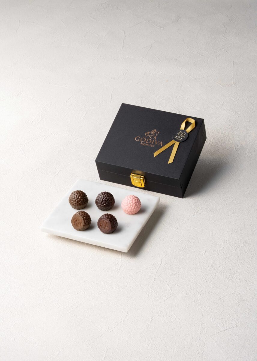 地球が育んだ宝石、カカオ。ゴディバの創立100周年を祝して、世界の舞台で活躍するスターシェフ5人がカカオへの深い敬愛を込め、それぞれの感性で創り上げた限定トリュフが誕生しました。ひと粒ごとにそれぞれのスターシェフの感性輝く、カカオの深い味わい。それらを、真っ黒な黒トリュフのようになシックな箱に詰め、特別な5粒のアソートとしてお届けします。